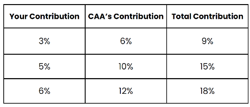 Pensions: The CAA Personal Pension Plan (CAAPPP) is a defined contribution scheme (DC) provided by Legal and General and offers a flexible approach to saving for your retirement, via salary sacrifice. Please refer to the chart below regarding contributions.